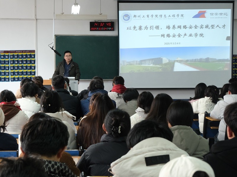 3月4日,信息工程学院在一号教学楼301教室举办信息工程学院“以竞赛为引领,培养网络安全实战型人才”活动。信息工程学院院长汪金龙、网络技术教研室主任张连青、特邀嘉宾河南信安世纪科技有限公司校企合作部总监常玉存及企业工程师尹文卓出席,网络工程专业、数据科学与大数据技术专业大二部分学生代表参加。本次活动旨在通过竞赛的形式,激发学生对网络安全领域的兴趣,提升其实战能力,为未来的职业发展打下坚实基础。