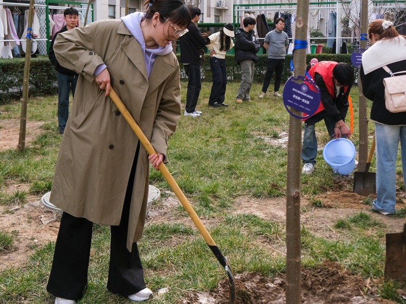 活动伊始,院长汪金龙发表动员讲话,他强调,此次绿色行动既是为校园添彩的生态实践,更是用劳动汗水浇灌焦裕禄精神的精神淬炼过程。随后,支部成员认领了负责的树木,并赋予其“焦桐”的特殊寓意——以焦裕禄同志当年在兰考亲手栽下的“焦桐”为精神纽带,象征党员干部扎根群众、服务人民的初心。在支部书记杨璐的带领下,党员们挥锹铲土、培土围堰,为认领的树木挂上标识牌,还制定了详细的日常管理计划,包括定期浇水、松土、除草、施肥等工作。支部书记杨璐表示,焦裕禄同志“亲民爱民、艰苦奋斗”的精神,激励我们既要守护自然生态,更要厚植初心使命。
