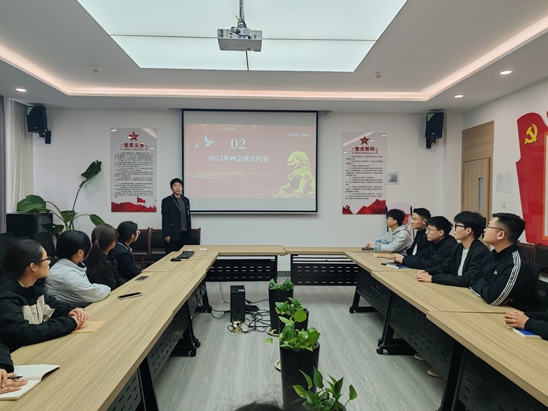 活动伊始,赵世杰向大家详细介绍了2025年全国两会的重要意义、会议议程及主要成果,着重解读了政府工作报告中关于科技创新、数字经济等与信息工程领域密切相关的内容。通过深入剖析,引导党员们认识到信息工程在国家发展中的关键作用,鼓励大家将个人专业学习与国家战略需求紧密结合。