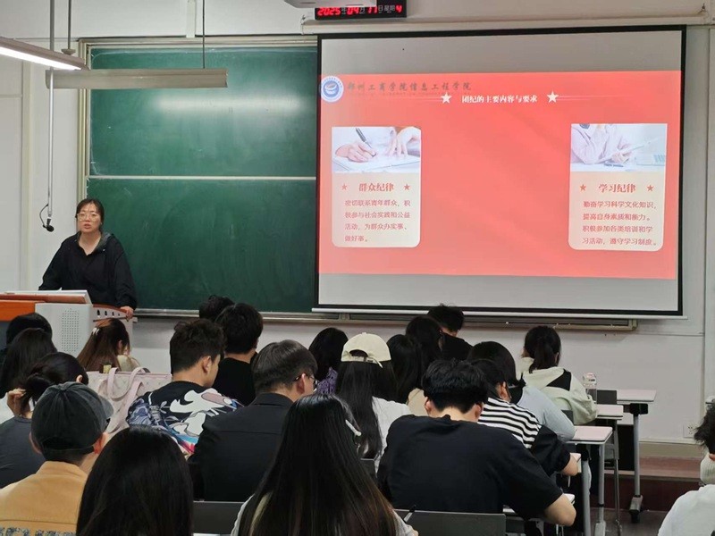 4月10日,信息工程学院在三号楼树德讲堂组织开展“青马工程”第四讲。宣传委员杨璐以“党纪、团纪学习”为主题授课,信息工程学院青马工程全体学生参加。