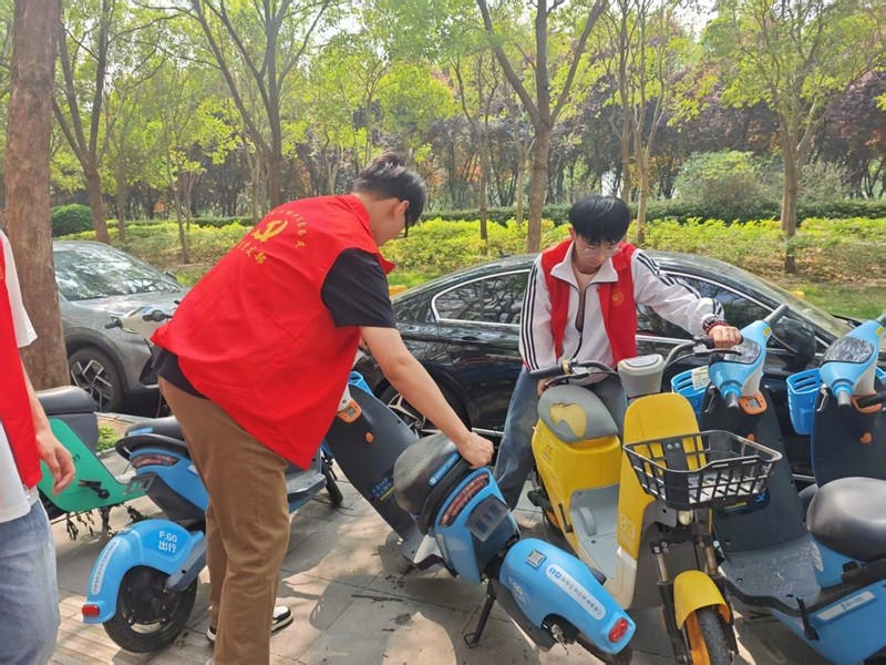 4月21日,信息工程学院学生第八党支部在西校区1号门组织开展“共享文明齐守护,党员先行践使命”主题党日活动。支部党员针对共享单车规范摆放开展志愿服务,用实际行动擦亮党员先锋底色。本次活动由党支部书记宋坤祥主持,学生第八党支部全体学生党员参与。