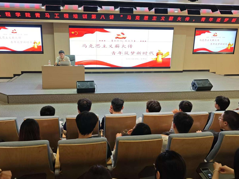 4月22日,信息工程学院“青马工程”第八讲开讲,学院导员宋坤祥以“马克思主义薪火传,青年逐梦新时代”为主题授课,全体青马学员参与。
