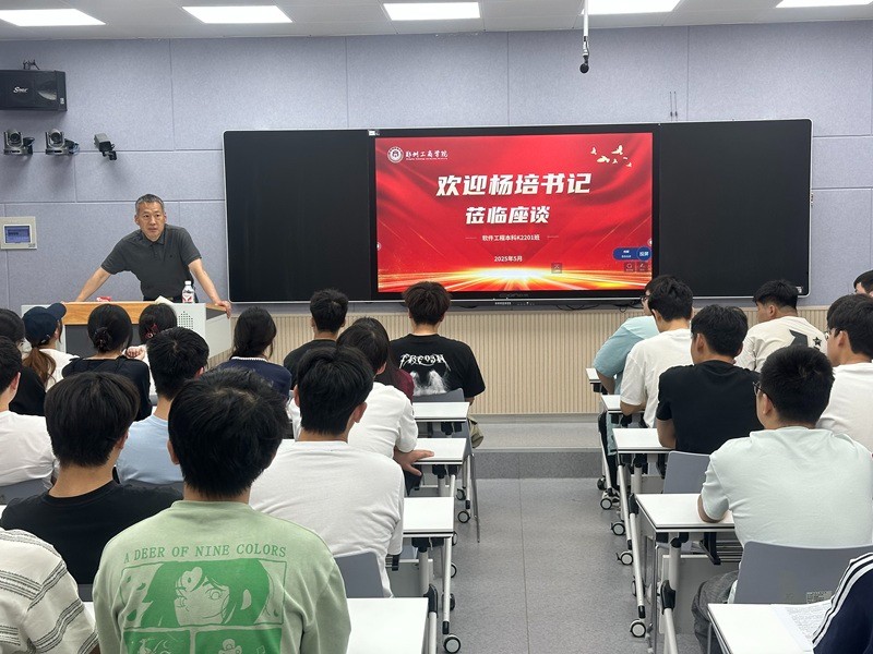 5月6日,校党委书记杨培走进二号教学楼304智慧教室,深入软件工程本科K2201班开展领导座谈会,班级全体成员参加。