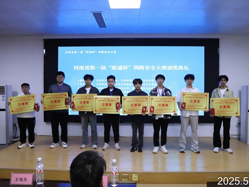 5月23日,河南省第一届“联通杯”网络安全大赛圆满落幕,我校参赛选手在本次大赛中表现突出,再次展现出专业实力,取得了优异成绩。