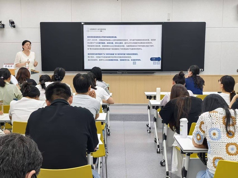 培训伊始,翟艳丽深入分析当前教育改革的背景与政策导向。她指出,在国家“教育强国”战略背景下,河南省正面临着产业转型升级与高等教育质量提升的双重挑战,高校传统培养模式与企业实际需求存在脱节,教学改革迫在眉睫。而省级教改项目是破解人才培养结构性矛盾的关键突破口,也是高校实现内涵式发展的核心抓手。随后,她以华北水利水电大学“新工科人才培养模式改革”项目为例,阐述教改项目对专业建设、人才培养质量提升的巨大推动作用,强调教改项目对学校、教师的多方面价值。最后,针对项目申报关键策略,翟教授着重强调选题创新性、团队组建合理性、申报书撰写质量的重要性,同时提醒老师们在选题时要紧密结合河南省教育实际情况和时代发展需求,避免跟风和简单重复;团队成员应跨学科、跨领域合作,形成优势互补;申报书应逻辑清晰、研究内容明确、方法选择恰当。本次培训紧扣新时代高等教育内涵式发展要求,为学院青年教授申报省级教改项目打开了新的思路。