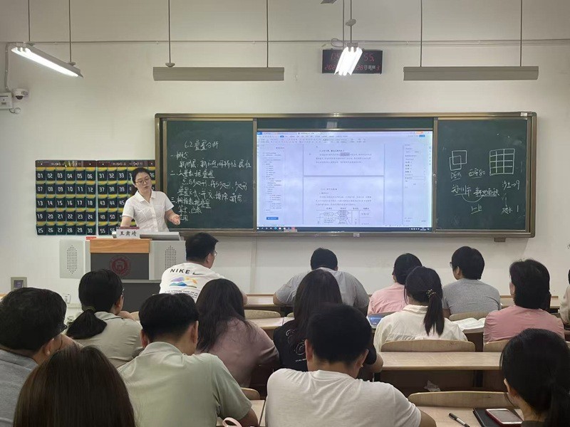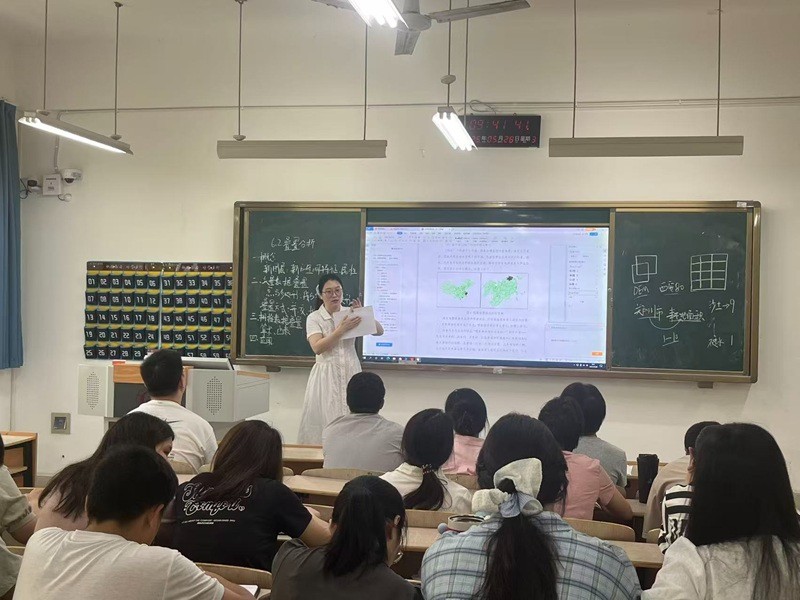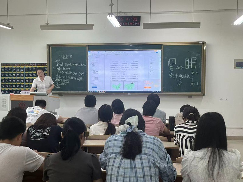 活动伊始,王肃靖老师以《地理信息系统原理》课程为切入点,深入剖析了两大极具代表性的课程思政典型案例。在“立德树人 强基塑能”案例中,王老师巧妙选取郑州“7·20特大暴雨灾害”这一真实且具有深刻教育意义的事件,将拓扑数据结构知识与抗洪精神、民族自豪感紧密结合。通过详细分析救援过程中各省份的空间关系,引导学生深刻理解“一方有难,八方支援”的民族精神内涵,使学生在掌握专业知识的同时,增强社会责任感和使命感。随后,在“匠心测就山河卷,匠心淬炼中国芯”案例中,王老师结合嫦娥探月、珠峰测量、北斗导航等一系列国家重大工程,生动阐释了空间数据技术对国家战略的重要支撑作用。以北斗系统自主创新为例,在“空间数据采集”章节教学中,激发学生科技报国的远大志向和使命担当,鼓励学生将个人发展与国家需求紧密相连。
