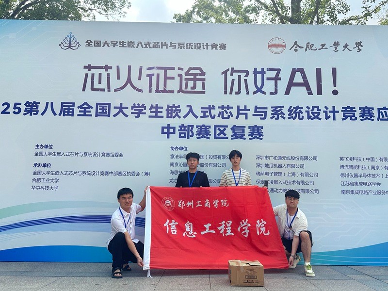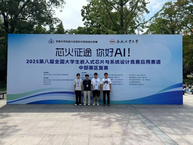 7月18日至20日,第八届(2025)全国大学生嵌入式芯片与系统设计竞赛中部赛区复赛在合肥工业大学举办,我校学子李少华、赵兵毅、陈磊、陈浩、王鹏飞、王东旭6位同学组成的2支队伍从初赛中突围,由赵世杰率队参加复赛。