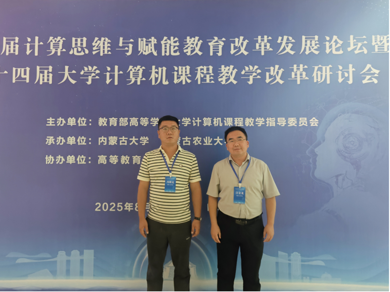8月6日-8月8日,由内蒙古大学和内蒙古农业大学承办,高等教育出版社协办的“第七届计算思维与赋能教育改革发展论坛暨第十四届大学计算机课程教学改革研讨会”在呼和浩特召开,我院汪金龙和冯继克两位教师参会。