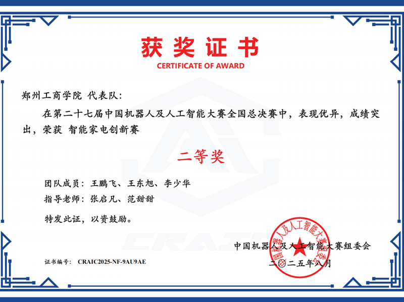 中国机器人及人工智能大赛作为国内极具影响力的科技竞赛之一,本届赛事吸引了全国数百所高校的千余支队伍同台竞技。大赛围绕机器人技术、人工智能算法、智能应用场景等核心领域设置多个赛道,全面考察参赛选手的创新思维、工程实践能力和团队协作水平。我校信息工程学院高度重视此次赛事,赛前组织张启凡和范甜甜两位教师对参赛队伍进行系统指导,从技术方案设计、算法优化到实物调试,全程为学子提供支持。参赛学子们利用课余时间刻苦钻研,反复打磨作品,在赛场上沉着应对评委提问和现场挑战,最终凭借出色的表现斩获荣誉。
