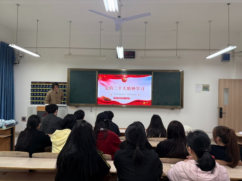 10月22日,信息工程学院学生第一党支部在一号楼410教室组织开展"学习贯彻党的二十大精神"主题党日活动。由支部负责人袁梦媛主持,学生第一党支部全体成员参加。