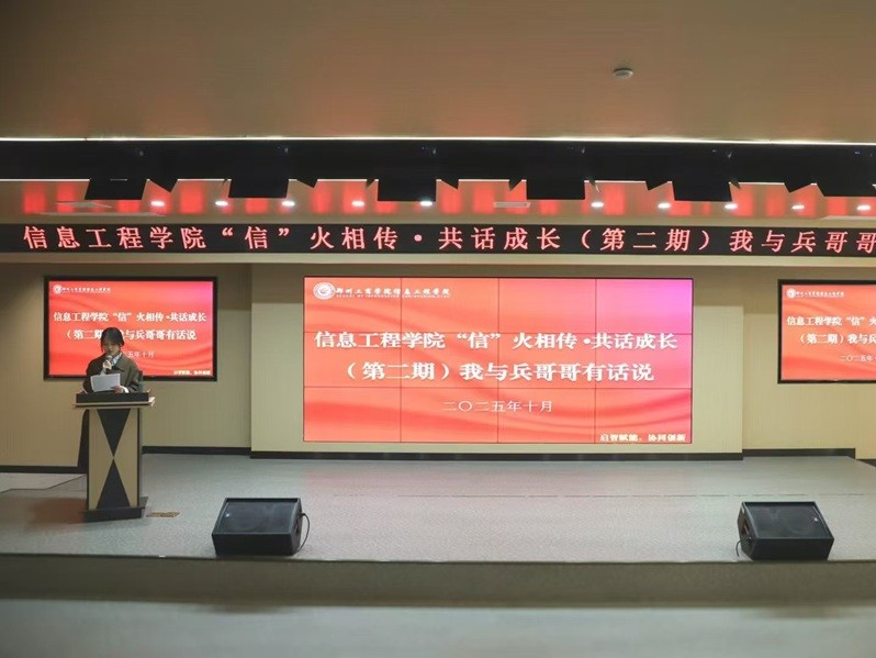 10月30日,信息工程学院在三号教学楼树德讲堂组织召开“信”火相传·共话成长(第二期)退役军人征兵政策宣讲会。信息工程学院团总支书记杨璐、大二年级长宋坤祥、大三年级长彭康,以及2025级专科、2024级专科全体学生及相应辅导员老师参加会议。本次会议由张子涵主持。