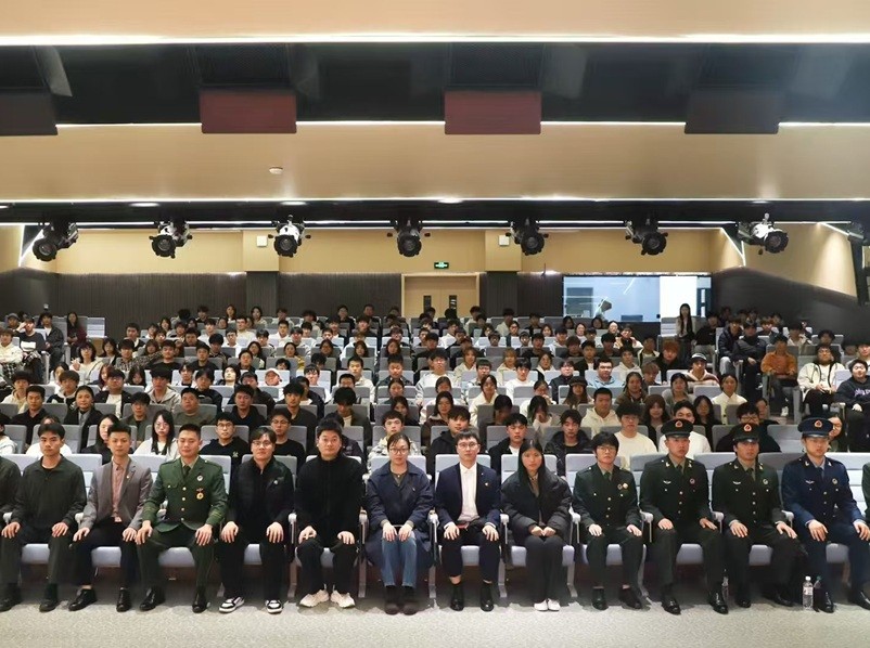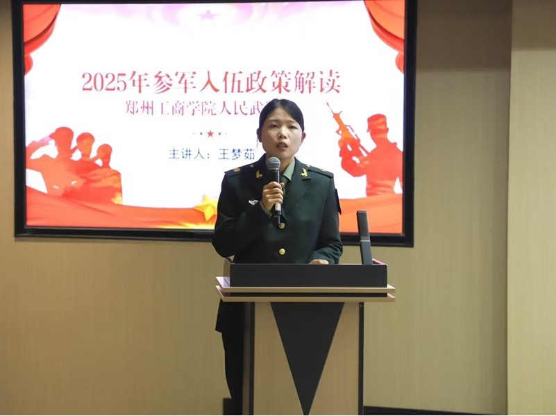 会议伊始,退伍军人张程、路凯、张展鹏等6人进行风采展示。他们身姿挺拔、精神饱满,以标准军姿和过硬素质,将军人的良好形象展现得淋漓尽致。紧接着,主讲人路凯、仝一阳、张展鹏结合自身军旅生涯,讲述从初入军营的新兵,历经艰苦训练与实战考验,逐步成长为合格军人的历程,让学生对军营生活有了更直观的认识。随后,郑州工商学院武装部王梦茹老师详细解读征兵政策,涵盖报名条件、优待政策等关键信息,为有意参军的学生提供全面指导。互动环节中,学生围绕军营生活、个人发展等方面积极提问,主讲人与老师认真解答。最后,杨璐总结讲话,她表示本次活动有助于学生解军营生活,鼓励大家学习军人品质,将爱国精神转化为实际行动。活动现场气氛热烈,取得良好教育效果。