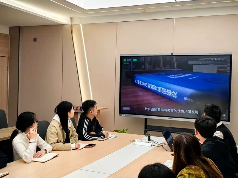 本期微党课以“培根铸魂传薪火,强国建设书华章”为主题,由华中科技大学、大连理工大学、北京城市学院、武汉理工大学四所高校联合呈现。党课聚焦“社会协同力”,深入阐释高校如何凝聚社会、企业、家庭等多方力量,协同推进教育更加符合人民利益、贴近强国建设需要,展现高校党组织在推动开放办学、整合社会资源、深化产教融合等方面的创新实践,生动诠释“大教育观”背景下共建共治共享的教育治理新格局。学习结束后,王蒙蒙总结强调,全体教师要进一步树立协同育人理念,积极拓展社会资源,推动教育与社会各领域深度融合,将学习成果转化为推动学院高质量发展的具体行动,以实际行动增强教育服务社会发展的能力,为教育强国建设注入基层动能。