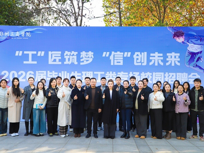 11月14日,信息工程学院和工学院在伯苓广场联合开展2026届毕业生理工类专场校园招聘会活动。郑州工商学院常务副校长王提、副校长王莹亲临招聘会现场视察指导。