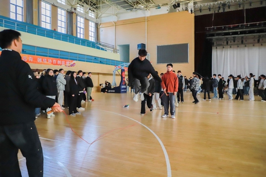 活动伊始,杨璐作赛前动员,指出 “焦桐” 所承载的坚韧协作精神与心理健康培育相辅相成;希望队员们以绳为媒增进同伴联结,在运动中释放压力、调节情绪;以阳光心态展现青春风采。随后,比赛正式开始。赛场上,各参赛队伍默契配合,摇绳者节奏精准,跳绳者身姿矫健,场下助威声此起彼伏,尽显师生团结奋进的风貌。经过三轮激烈比拼,比赛落下帷幕。最后,闭幕式上,宋坤祥宣读获奖名单,杨璐作总结讲话,她高度肯定各参赛队伍展现的协作意识与抗压能力,强调跳大绳活动不仅丰富了同学们的课余生活、拉近了同学之间的距离,更将心理健康教育融入竞技体验,有效助力同学们身心协同发展。