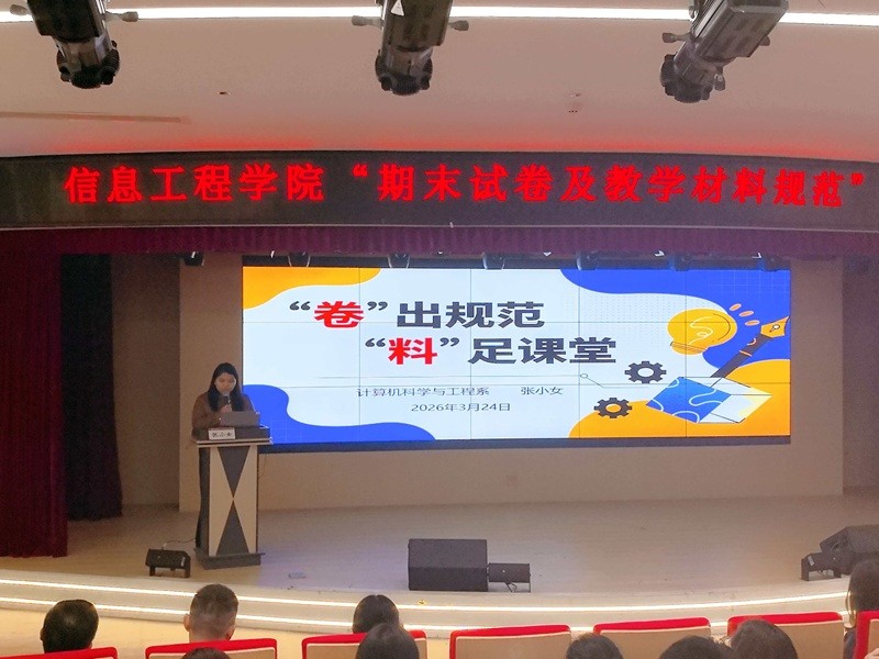 3月24日,信息工程学院在三号教学楼厚德讲堂开展“试卷及教学材料规范”主题教研活动。学院全体教师齐聚一堂,共同参与了此次活动。本次教研活动由计算机科学与工程系骨干教师张小女老师主讲。