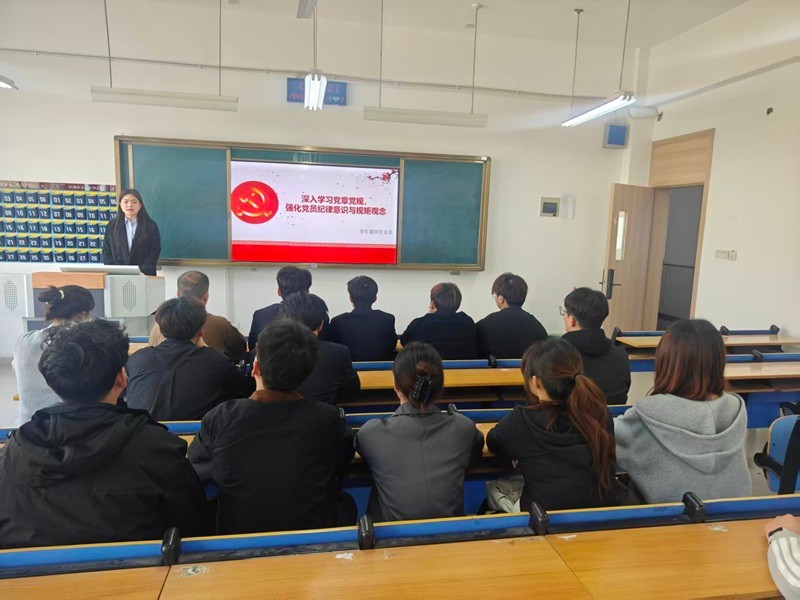 活动开始,程莹洛着重阐述了深入学习党章党规对强化党员纪律意识、明确行为规范的重要作用。随后,他借助PPT展示讲解,带领全体党员系统回顾党章核心要点,并结合《中国共产党纪律处分条例》等党内法规,针对政治纪律、组织纪律、廉洁纪律、群众纪律、工作纪律、生活纪律等方面内容展开详细阐释。最后,程莹洛进行总结讲话。他表示,党章党规是党员言行的根本准则,期望支部全体成员以此次学习为契机,把纪律规矩牢记于心、落实于行,时刻保持纪律意识,在学习和生活中发挥党员的先锋模范作用。