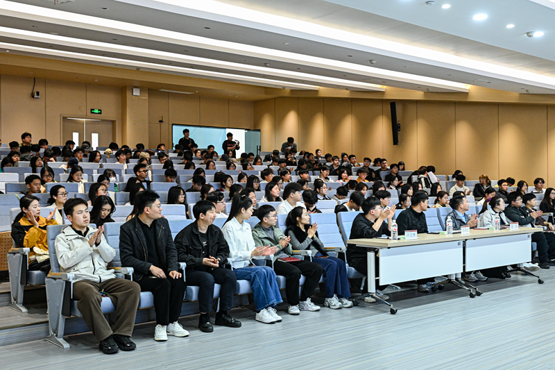 活动开始,主持人介绍到场嘉宾,学科竞赛负责老师程莹洛宣读比赛评审要点与规则。王蒙蒙在致辞中要求各参赛团队立足专业知识,提升创新能力与解决实际问题的水平,在竞赛中展现科研态度与进取精神。随后,入围的26个参赛小组依次进行5分钟路演展示及现场答辩。选手围绕项目背景、技术路线、创新点及社会价值等方面进行陈述。评委针对项目的可行性、科学性及应用前景进行逐一点评,并就完善作品逻辑、提升核心竞争力给出具体指导建议。最后,主持人宣布晋级校级赛事的项目名单,对晋级团队表示祝贺,并邀请所有参赛成员、评委及到场嘉宾合影留念,本次赛事在热烈的氛围中圆满落幕。