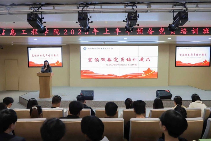 4月8日,信息工程学院党总支在三号教学楼怀德讲堂组织开展2026年预备党员学习培训班开班仪式。信息工程学院党总支副书记、副院长王蒙蒙,副院长杨裴裴,团总支书记杨璐,各年级长、辅导员出席,全体预备党员参加,活动由大艺团成员高婧莹主持。