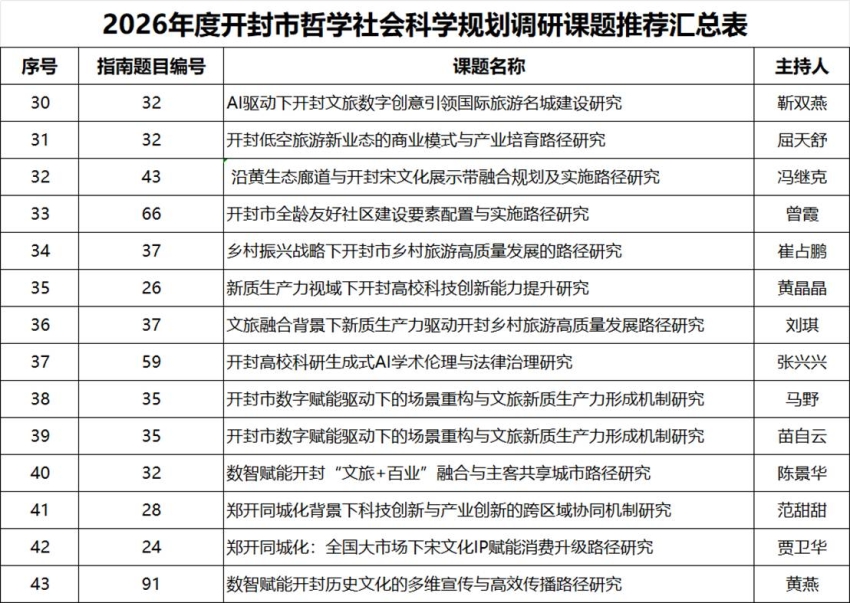 关于推荐2026年度开封市哲学社会科学规划调研课题结果的公示